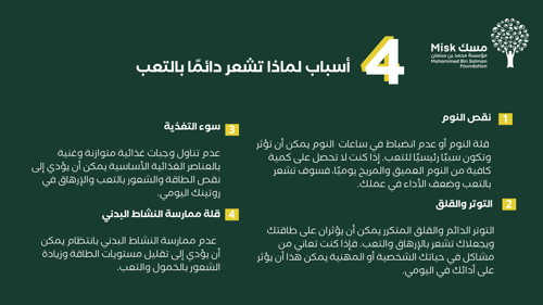 هنا عدة أسباب لشعورك بطاقة منخفضة خلال اليوم أو بالإرهاق المستمر: