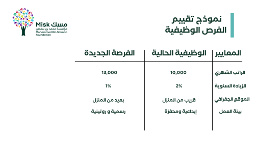 من المعايير المهمة في اتخاذ قرار الاستقالة هو معرفة وضعك المالي بعد مغادرة العمل، وأيضا مهم معرفة قيمتك في السوق ومعرفة مهاراتك وقدراتك الشخصية حتى تتمكن من التفاوض مع جهات مختلفة أو طلب ترقية بكل ثقة في وظيفتك الحالية.