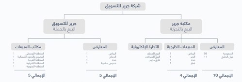 لديها كذلك ٥ معارض تتبع جرير للتسويق (بيع بالجملة) وعدد 5 مكاتب مبيعات أيضاً للبيع بالجملة.