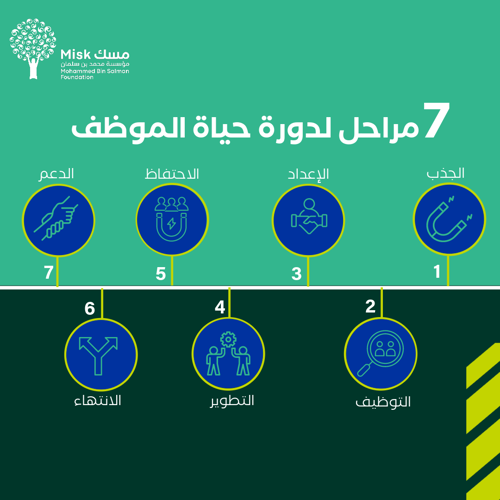 المراحل السبع في دورة حياة الموظف وأهم المهارات التي يجب أن يمتلكها الموظف في كل مرحلة: