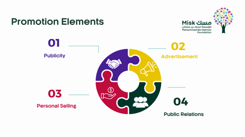 Just as marketing is divided into elements (product, price, distribution, promotion), promotion is subdivided into elements (publicity, advertising, personal selling, public relations).
