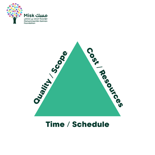 Successful project management requires maintaining a balance between key constraints: scope, time, and cost. This relationship can be visualized using the project management triangle model.