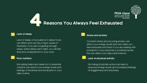 Here are several reasons you might feel low on energy during the day or experience continuous exhaustion: